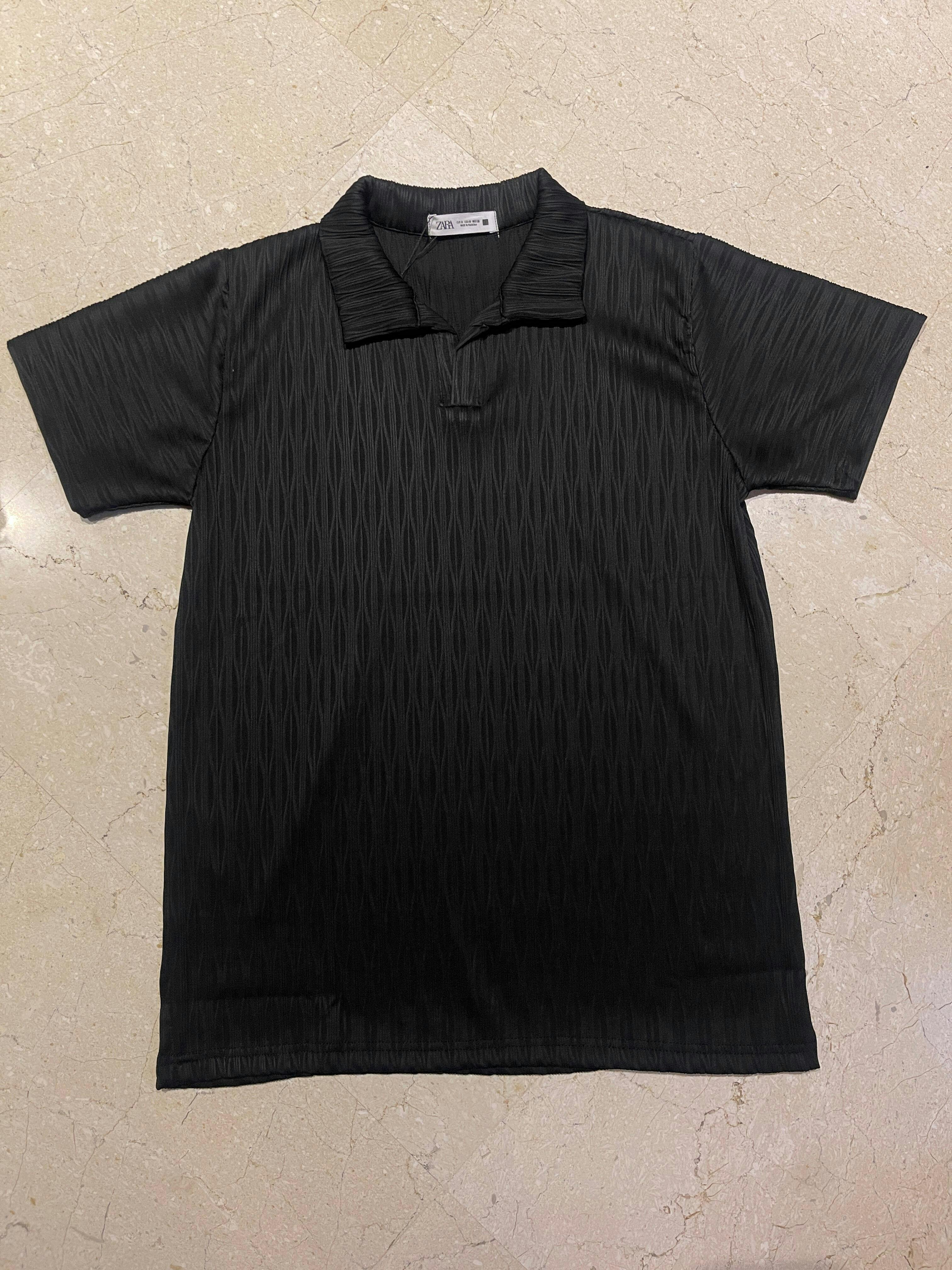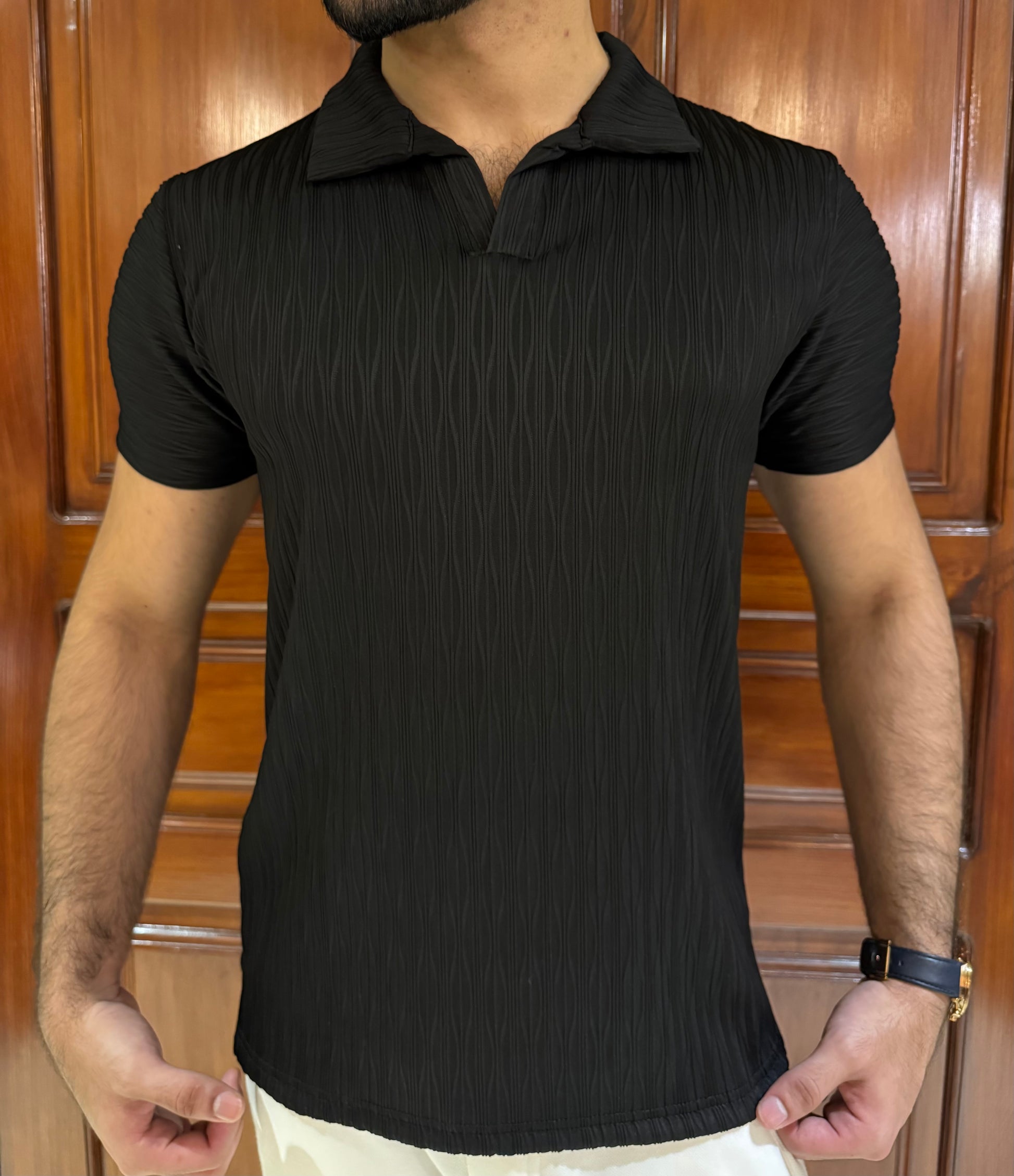 ZR Textured Stretchable Johnny Collar T-Shirt-Black